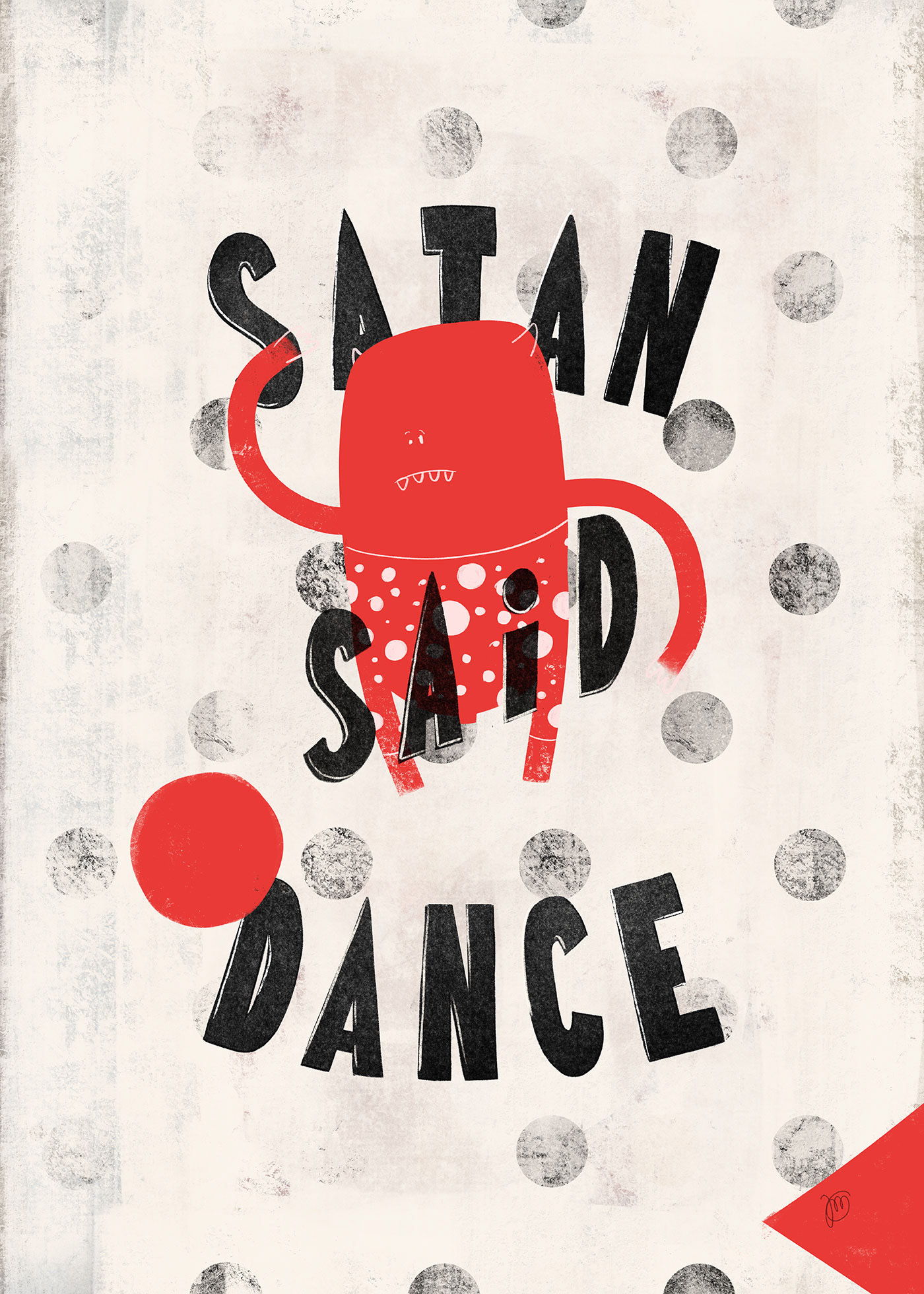 Dance like no one is watching... A cartoon character waving to you, encouraging you to dance, sing, do whatever you like that makes you happy. Poster and t-shirt design.